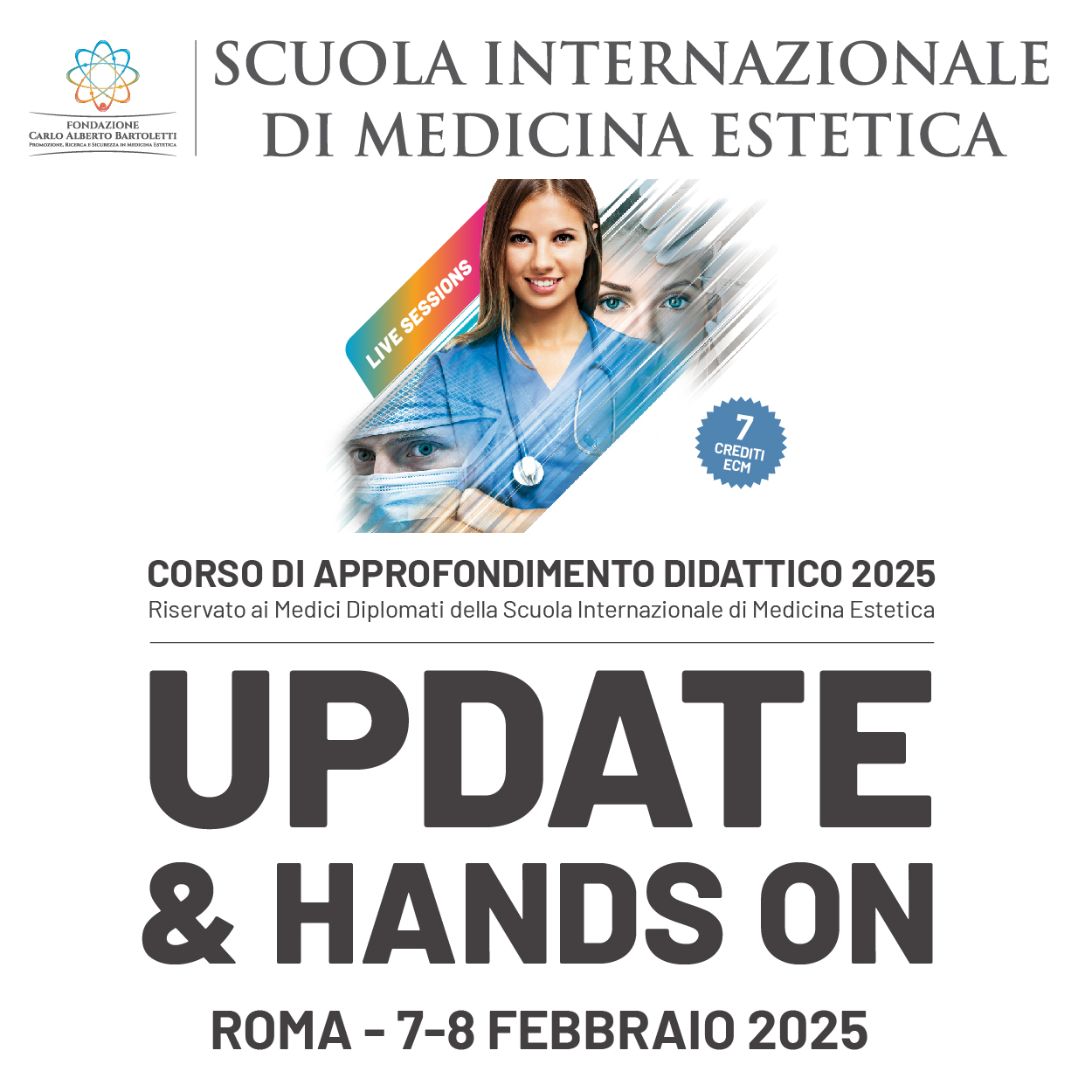 Si terrà a Roma presso Courtyard by Marriot Rome Central Park nei giorni 7 e 8 febbraio 2025 il Corso di Approfondimento Didattico riservato ai Medici Diplomati della Scuola Internazionale di Medicina Estetica della Fondazione Carlo Alberto Bartoletti.